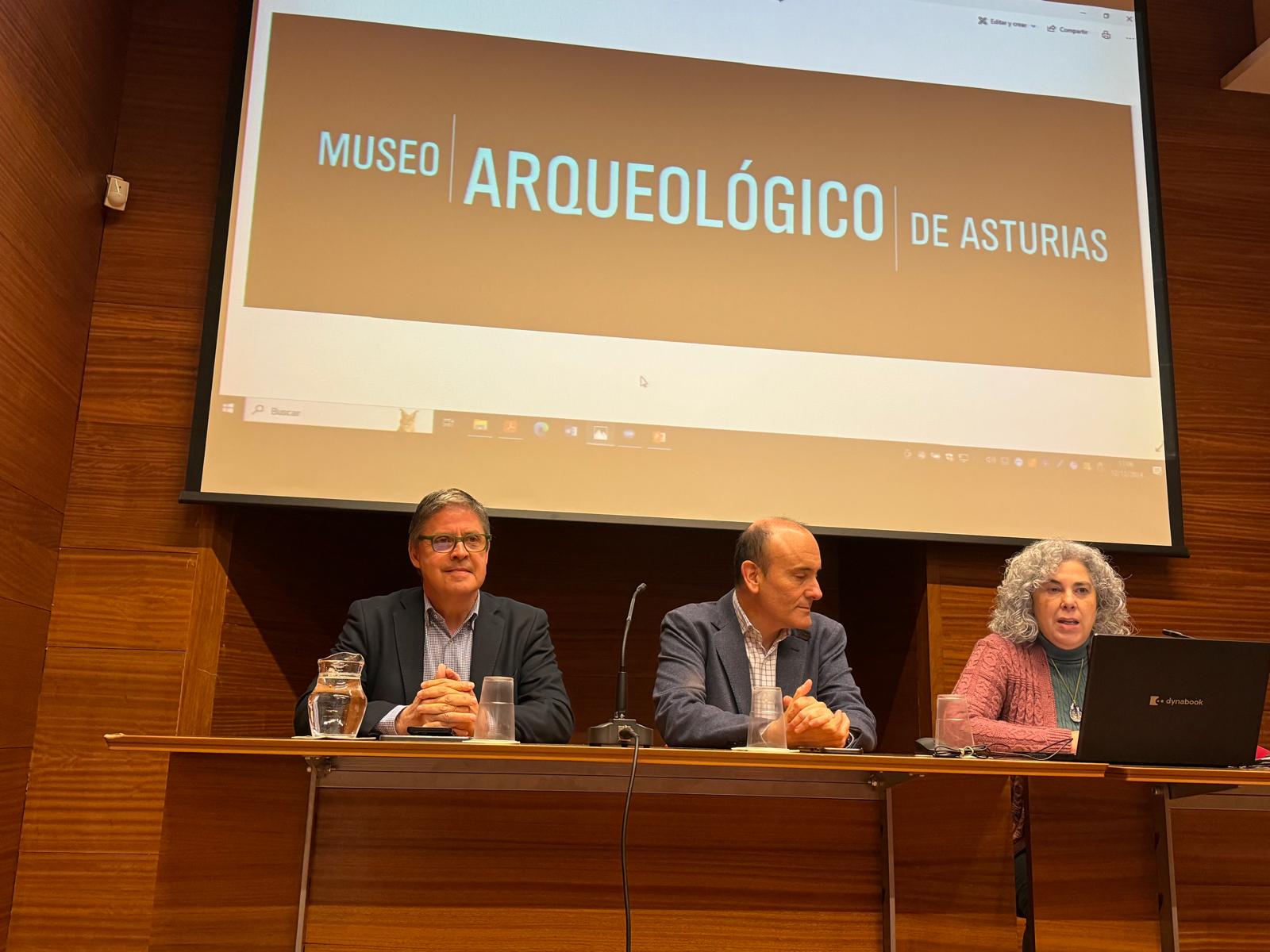 El director general de Promoción de la Autonomía Personal y Mayores, Enrique Rodríguez Nuño; el director general de Patrimonio Cultural, Pablo León, y la directora del centro expositivo, Antonia Pedregal, han presentado hoy esta iniciativa de colaboración, que pretende hacer del Museo Arqueológico, ubicado en Oviedo/Uviéu, un espacio accesible e inclusivo que acerque la cultura a las personas mayores.