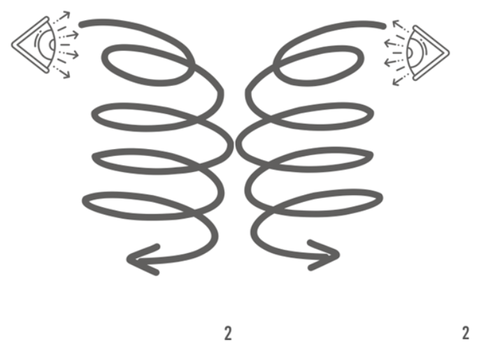 En la segunda doble página, tenemos dos ojos enfrentados a los que les sigue una espiral.