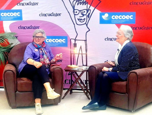 Imagen 3. Encuentro: La Economía del Cuidado en Asturias, celebrado en Oviedo los días 20, 21 y 22 de abril de 2023. Las integrantes de la imagen son Yolanda Lobo, Fundadora del Movimiento Cincuenter (izquierda) y Matilde Fernández, Presidenta del Observatorio Nacional contra la Soledad no Deseada (derecha).